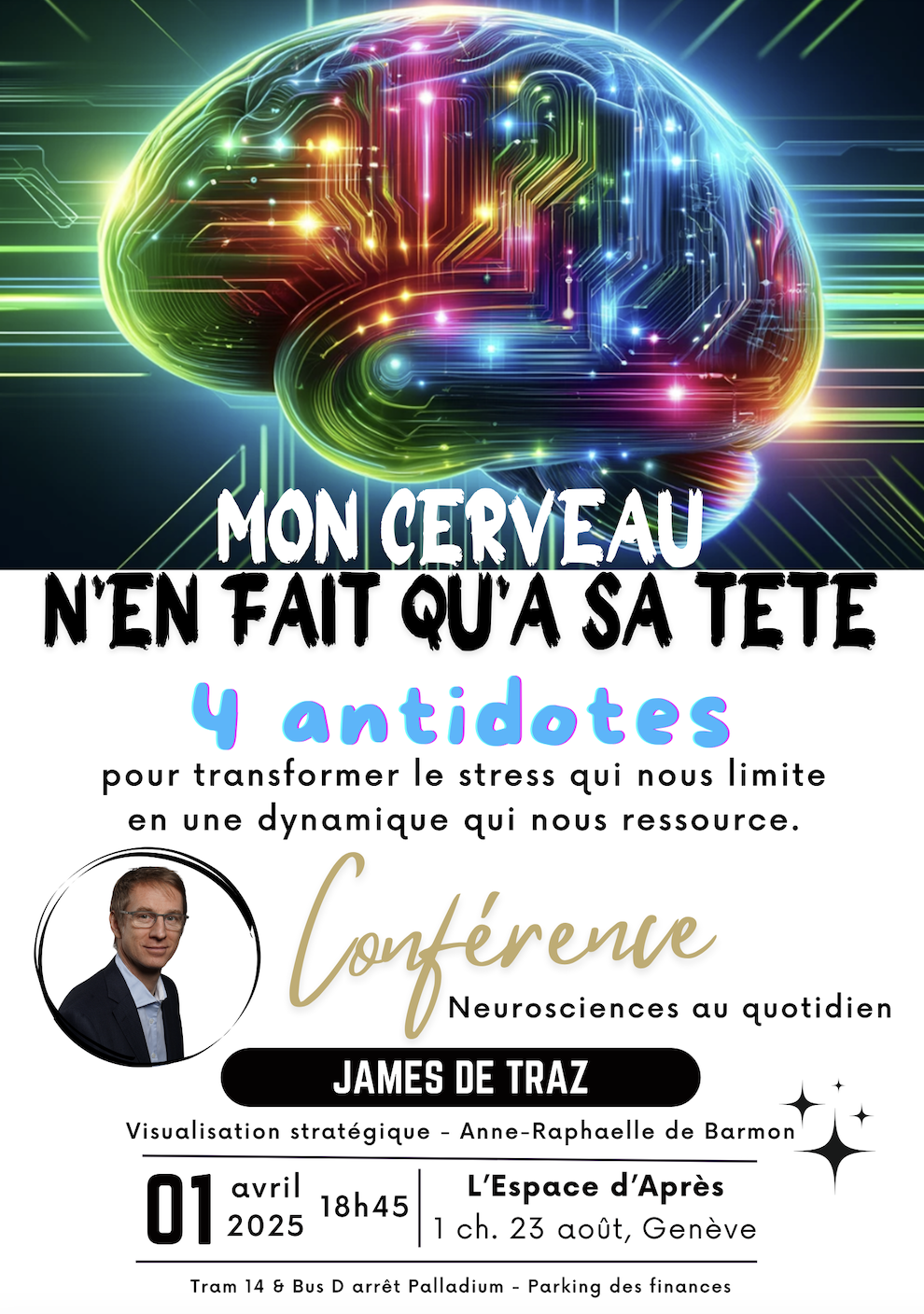 Neurospécialiste en stratégies de résilience et auteur genevois, James de Traz nous invite à découvrir et acquérir 4 techniques simples et efficaces pour :